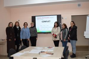 Acesta a fost subiectul tratat la ședința Consiliului Reprezentativ al Părinților (CRP). Părinții participanți au răspuns la un șir de întrebări: Cum putem interacționa eficient când ne aflăm într-o situație conflictuală? Cum putem să-i ascultăm pe copii mai bine? Cum putem să exprimăm în mod clar ceea ce vorbim? Filip Elena, directoare adjunctă pentru educație, moderatoarea ședinței a implicat membrii CRP în activități legate de strategii de ascultare, de tehnicile de conversație eficientă, de limbajul corporal și de încredere. Activitățile propuse în cadrul ședinței CRP au avut un caracter practic; permit să experimenteze și să progreseze; au stimulat discuțiile; au fost amuzante; au avut un mare potențial educativ și au fost adaptate. Aceste activități îi vor ajuta pe părinți cum copiii să investigheze relația dintre conflicte și propriile lor credințe, sentimente, gânduri și experiențe de viață, dar și îi vor ajuta să dezvolte strategii pentru a face față conflictelor, bazate pe propriile lor personalități, părți tari și posibilități. Filip Elena, directoare adjunctă, a reliefat importanța comunicării în timpul conflictului care se bazează pe ascultare activă, empatie și asertivitate, implicând reformarea mesajelor pentru clarificare, adresarea de întrebări deschise și evitarea întreruperilor. Dumneaei a pus accent pe comunicare, cu rol dual, în ceea ce privește managementul conflictelor, menționând și celălalt sens al comunicării, cel de prevenire, evitare, gestionare, diminuare ori rezolvare a conflictelor, care presupun abilități de comunicare.